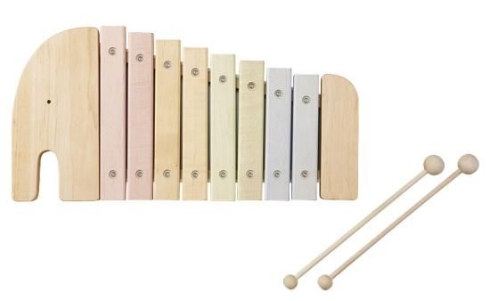 ぞうの形をしたやわらかい色合いのエレファントシロフォンは、木特有の温かみのある音を気持ちよく感じることができる木琴です。ド・レ・ミ・ファ・ソ・ラ・シ・ドと正確な音色を奏でることができ、贈り物に最適です。
