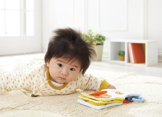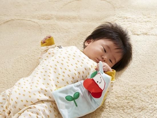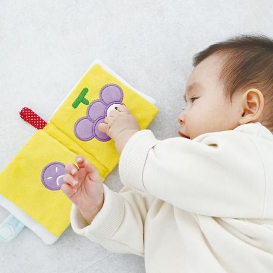 フルーツをめくるとかわいい顔が出てくる、赤ちゃんの大好きなフルーツと表情を掛け合わせた布絵本。フルーツはりんご、オレンジ、ぶどう、バナナの4種類。ベビーカーやバギーにもつけられるので、外出時にも紛失する心配なく遊べます。